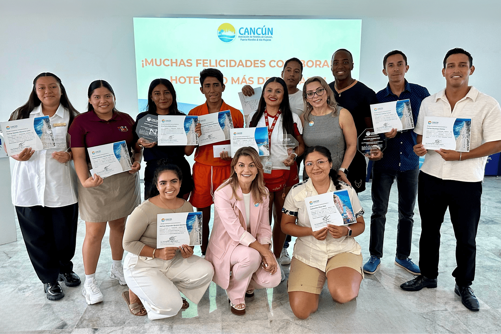 Organizado por la Asociación de Hoteles de Cancún, Puerto Morelos e Isla Mujeres (AHCPMIM), el evento reconoció el trabajo desempeñado por 23 empleados nominados por sus centros de trabajo y se premió a 8 colaboradores destacados con un reconocimiento y un premio de 3 mil pesos mexicanos en una tarjeta de regalo.
