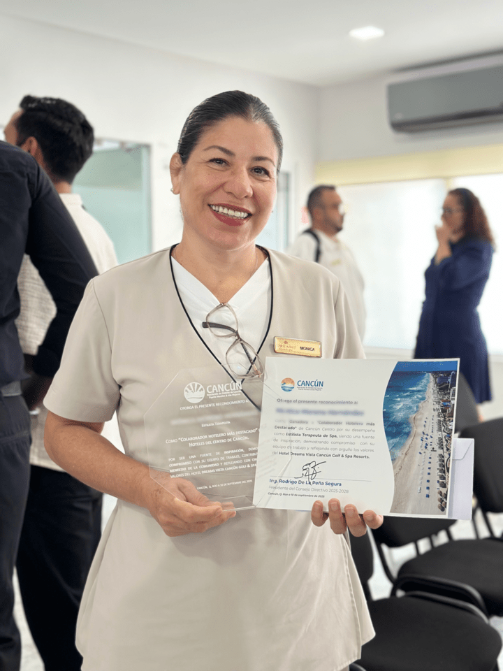 Los más destacados colaboradores hoteleros de las áreas de spa, gimnasio y entretenimiento en Cancún, fueron reconocidos esta semana durante la décima quinta entrega del reconocimiento al «Colaborador Hotelero Más Destacado».