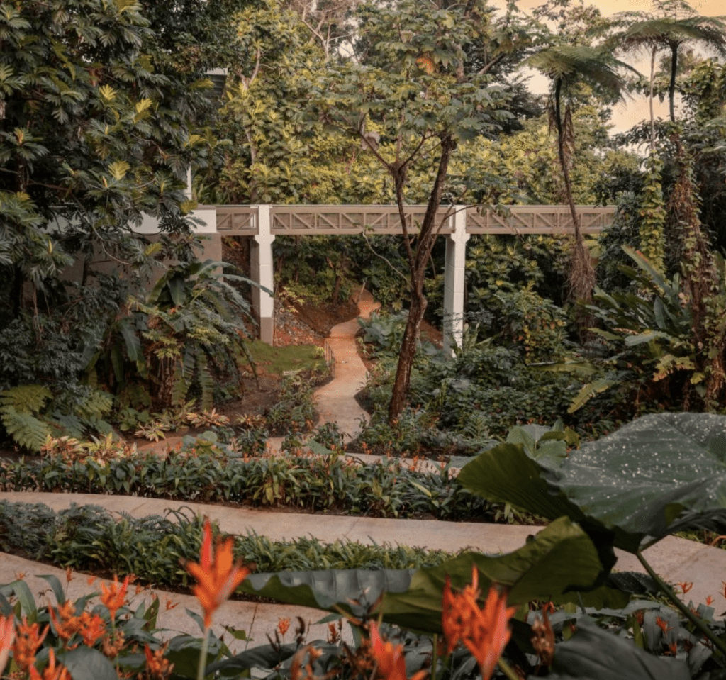 El espacio cuengta con diversos senderos en los cuales se pueden ver unas 240 especies de plantas y una gran variedad de aves y otras criaturas pequeñas, entre las que se cuenta la mascota local, la rana arborícola coquí.