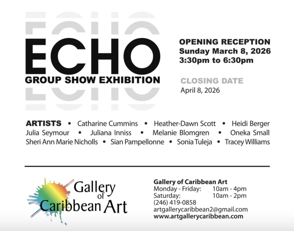 La obra de 11 reconocidas artistas de Barbados se reunirá en la Exposición Colectiva ECHO para compartir su sensibilidad artística distintiva y su ingenio creativo.