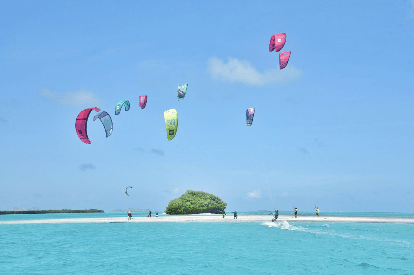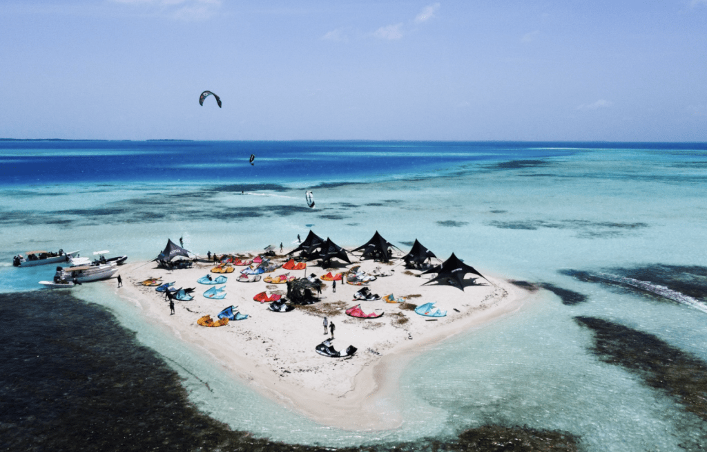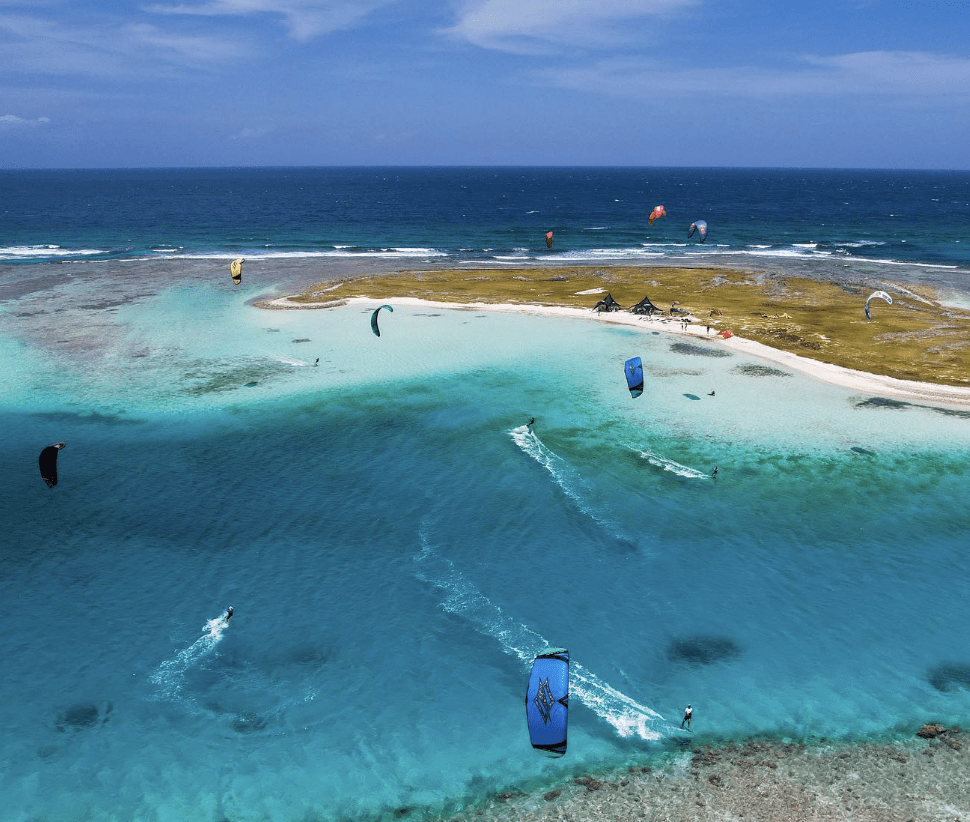 El cayo ofrece condiciones ideales tanto para kitesurfistas experimentados como para quienes están dando sus primeros saltos en el deporte.