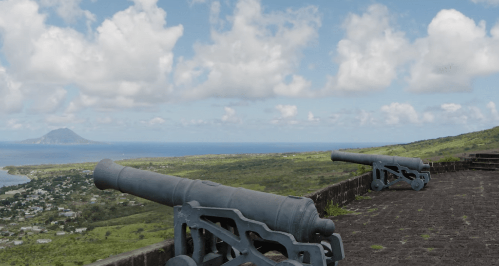 A 244 metros sobre el nivel del mar, la fortaleza ofrece vistas imponentes de la costa de la isla, la histórica ciudad de Sandy Point y los picos boscosos de su cordillera más septentrional.