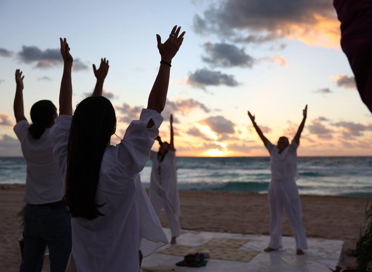 Durante la actividad, los participantes se mantuvieron sentados en la arena blanca, disfrutando del mar azul turquesa y una extraordinaria vista del amanecer, guiados por la instructora, Alma Angélica Torres Hernández, quien explicó qué es la meditación y realizó algunos ejercicios corporales y de respiración que ayudarán a los participantes a alcanzar un estado de calma.