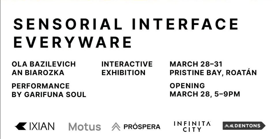 Del 28 al 31 de marzo de 2026, el Beach Club de Pristine Bay en Roatán acogerá Interfaz Sensorial Everyware, una instalación interactiva e inmersiva de los artistas Ola Bazilevich y An Biarozka.