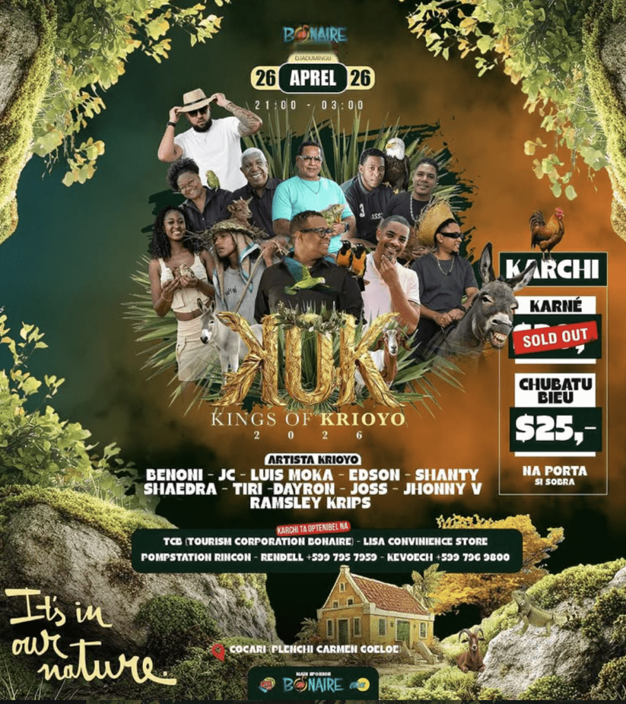 El 26 de abril, más de 10 leyendas y artistas locales del panorama musical de Bonaire protagonizarán el ya tradicional Kings of Krioyo 2026.